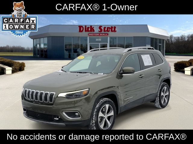 **ONE OWNER CAR FAX**, **ACCIDENT FREE CAR FAX**, **4X4**, **POWER MOONROOF**, **HEATED SEATS**, **HEATED AND COOLED SEATS**, **HEATED STEERING WHEEL**, **REMOTE START**, **BACK UP CAMERA**, Cherokee Limited, 4D Sport Utility, 3.2L V6, 9-Speed 948TE Automatic, 4WD, Olive Green Pearlcoat, Black Leather, 1-Year SiriusXM Guardian Trial, 4-Wheel Disc Brakes, ABS brakes, Carpeted Cargo Area Trim Panels, Elite Package, For Details Visit DriveUconnect.com, Fore/Aft Adjusting 2nd Row Seat, Hands-Free Power Liftgate, Heated 2nd Row Seats, Off-Road Info Pages, Quick Order Package 26G, Ventilated Front Seats. Odometer is 34026 miles below market average! 19/27 City/Highway MPG