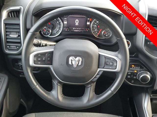 **CERTIFIED**, **ONE OWNER CAR FAX**, **ACCIDENT FREE CAR FAX**, **4X4**, **NAVIGATION**, **HEATED SEATS**, **HEATED STEERING WHEEL**, **REMOTE START**, **BACK UP CAMERA**, 115V Auxiliary Power Outlet, 2nd Row In Floor Storage Bins, 3 Rear Seat Head Restraints, 4 Way Front Headrests, 4-Wheel Disc Brakes, 400W Inverter, 4G LTE Wi-Fi Hot Spot, 9 Amplified Speakers w/Subwoofer, ABS brakes, Accent Color Door Handles, Accent Color Premium Power Mirrors, Air Conditioning ATC w/Dual Zone Control, All R1 High Radios, All Radio Equipped Vehicles, Anti-Spin Differential Rear Axle, Apple CarPlay, Auto-Dimming Exterior Driver Mirror, Auto-Dimming Rear-View Mirror, Big Horn Badge, Big Horn Level B Equipment Group, Black Exterior Truck Badging, Black Headlamp Bezels, Black Interior Accents, Black Painted Exterior Mirrors Caps, Black Premium Power Mirrors, Body Color Front Bumper, Body Color Rear Bumper w/Step Pads, Bucket Seats, Class IV Receiver Hitch, Cluster 7.0" TFT Color Display, Connected Travel & Traffic Services, Connectivity - US/Canada, Convex Wide-Angle Exterior Mirror Insert, Deluxe Cloth Bucket Seats, Dual Exhaust w/Black Tips, Exterior Mirrors Courtesy Lamps, Exterior Mirrors w/Heating Element, Exterior Mirrors w/Supplemental Signals, For Details, Visit DriveUconnect.com, For More Info, Call 800-643-2112, Front Fog Lamps, Front Seat Back Map Pockets, Full Length Floor Console, Global Telematics Box Module (TBM), Glove Box Lamp, Google Android Auto, GPS Navigation, Grille Surround 1 Black Texture 2 Black, HD Radio, Heated Front Seats, Heated Steering Wheel, Integrated Voice Command w/Bluetooth, LED Footwell Lighting, Manual Adjust 4-Way Front Passenger Seat, Media Hub w/2 Charge Only USBs, Night Edition, ParkSense Front/Rear Park Assist w/Stop, Power 2-Way Driver Lumbar Adjust, Power 8-Way Driver Seat, Power Adjustable Pedals, Power-Folding Mirrors, Quick Order Package 23Z Big Horn, Radio: Uconnect 5 Nav w/12.0" Display, RAM Grille Badge - Black, Rear 60/40 Folding Seat, Rear Center Armrest, Rear Dome w/On/Off Switch Lamp, Rear Power Sliding Window, Rear Window Defroster, Remote Start System, Security Alarm, SiriusXM Radio Service, SiriusXM Satellite Radio, SiriusXM w/360L, Sun Visors w/Illuminated Vanity Mirrors, Universal Garage Door Opener, USB Host Flip, Wheels: 20" x 9.0" Premium Paint/Polished.