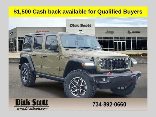 This Wrangler Rubicon is nicely equipped with Convenience Group (Heated Front Seats, Heated Steering Wheel, and Universal Garage Door Opener), Quick Order Package 22R Rubicon, Technology Group (12.3" Touchscreen Display, 4G LTE Wi-Fi Hot Spot, Apple CarPlay, Auto-Dimming Rear-View Mirror, Connected Travel and Traffic Services, Connectivity - US/Canada, For More Info, Call 800-643-2112, Google Android Auto, GPS Navigation, HD Radio, Integrated Center Stack Radio, Integrated Off-Road Camera, Integrated Voice Command with Bluetooth, Radio: Uconnect 5 Navigation with 12.3" Display, SiriusXM Radio Service, and SiriusXM with 360L), 4-Wheel Disc Brakes, 4.10 Rear Axle Ratio, 8 Speakers, ABS brakes, Air Conditioning, Alloy wheels, Alpine Premium Audio System, AM/FM radio: SiriusXM with 360L, Apple CarPlay/Android Auto, Automatic temperature control, Aux Battery, Auxiliary Switches, Black 3-Piece Hard Top, Brake assist, Class II Receiver Hitch, Cloth Low-Back Bucket Seats, Compass, Delay-off headlights, Driver door bin, Driver vanity mirror, Dual front impact airbags, Dual front side impact airbags, Electronic Stability Control, Emergency communication system: Jeep Connect, Freedom Panel Storage Bag, Front anti-roll bar, Front Bucket Seats, Front Center Armrest w/Storage, Front dual zone A/C, Front fog lights, Front reading lights, Fully automatic headlights, Heated door mirrors, Illuminated entry, Integrated roll-over protection, Low tire pressure warning, MOPAR All-Weather Floor Mats, Non-Lock Fuel Cap Without Discriminator, Occupant sensing airbag, Outside temperature display, Overhead airbag, Panic alarm, ParkView Rear Back-Up Camera, Passenger door bin, Passenger vanity mirror, Performance Suspension, Power door mirrors, Power steering, Power windows, Radio data system, Radio: Uconnect 5 with 12.3" Display, Rear anti-roll bar, Rear reading lights, Rear Window Defroster, Rear Window Wiper/Washer, Remote keyless entry, Security system, Speed control, Split folding rear seat, Steering wheel mounted audio controls, Stop-Start Dual Battery System, Tachometer, Telescoping steering wheel, Tilt steering wheel, Traction control, Trip computer, Variably intermittent wipers, Voltmeter, and Wheels: 17" x 7.5" Machined/Painted Black... Customers must qualify for FCA employee pricing and qualify for the following rebates, Price includes: $1500 - 2026 National Stellantis Loyalty Retail Bonus Cash . Exp. 02/02/2026