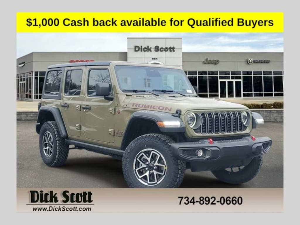 This Wrangler Rubicon is nicely equipped with Convenience Group (Heated Front Seats, Heated Steering Wheel, and Universal Garage Door Opener), Quick Order Package 22R Rubicon, Technology Group (12.3" Touchscreen Display, 4G LTE Wi-Fi Hot Spot, Apple CarPlay, Auto-Dimming Rear-View Mirror, Connected Travel and Traffic Services, Connectivity - US/Canada, For More Info, Call 800-643-2112, Google Android Auto, GPS Navigation, HD Radio, Integrated Center Stack Radio, Integrated Off-Road Camera, Integrated Voice Command with Bluetooth, Radio: Uconnect 5 Navigation with 12.3" Display, SiriusXM Radio Service, and SiriusXM with 360L), 4-Wheel Disc Brakes, 4.10 Rear Axle Ratio, 8 Speakers, ABS brakes, Air Conditioning, Alloy wheels, Alpine Premium Audio System, AM/FM radio: SiriusXM with 360L, Apple CarPlay/Android Auto, Automatic temperature control, Aux Battery, Auxiliary Switches, Black 3-Piece Hard Top, Brake assist, Class II Receiver Hitch, Cloth Low-Back Bucket Seats, Compass, Delay-off headlights, Driver door bin, Driver vanity mirror, Dual front impact airbags, Dual front side impact airbags, Electronic Stability Control, Emergency communication system: Jeep Connect, Freedom Panel Storage Bag, Front anti-roll bar, Front Bucket Seats, Front Center Armrest w/Storage, Front dual zone A/C, Front fog lights, Front reading lights, Fully automatic headlights, Heated door mirrors, Illuminated entry, Integrated roll-over protection, Low tire pressure warning, MOPAR All-Weather Floor Mats, Non-Lock Fuel Cap Without Discriminator, Occupant sensing airbag, Outside temperature display, Overhead airbag, Panic alarm, ParkView Rear Back-Up Camera, Passenger door bin, Passenger vanity mirror, Performance Suspension, Power door mirrors, Power steering, Power windows, Radio data system, Radio: Uconnect 5 with 12.3" Display, Rear anti-roll bar, Rear reading lights, Rear Window Defroster, Rear Window Wiper/Washer, Remote keyless entry, Security system, Speed control, Split folding rear seat, Steering wheel mounted audio controls, Stop-Start Dual Battery System, Tachometer, Telescoping steering wheel, Tilt steering wheel, Traction control, Trip computer, Variably intermittent wipers, Voltmeter, and Wheels: 17" x 7.5" Machined/Painted Black... Customers must qualify for FCA employee pricing and qualify for the following rebates, Price includes: $1000 - 2026 National Retail Bonus Cash . Exp. 04/30/2026