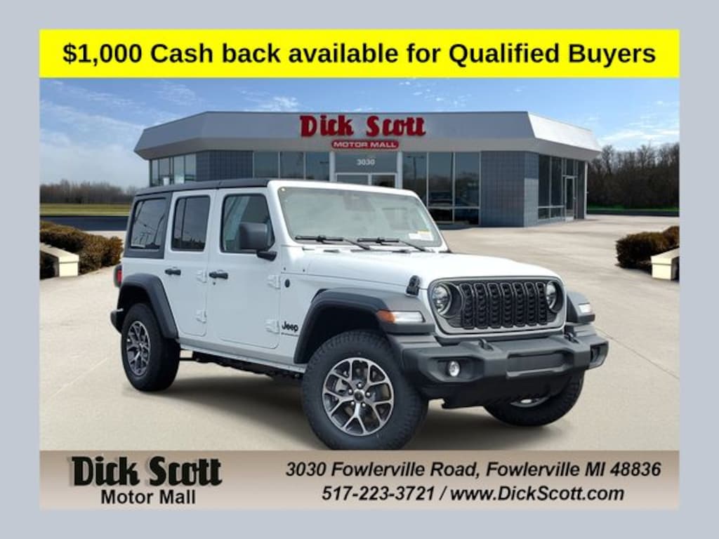 Get your best shot at Dick Scott Motor Mall! Located in Fowlerville at exit 129 off I-96. We are here 9am -8pm Monday & Thursday , 9am -6pm Tuesday, Wednesday , & Friday ,10am - 3pm Saturday and always open online at www.dickscottmotormall.com.vehicle is not available for finale sale until the title is in the possession of the dealer. Customers must qualify for FCA employee pricing and qualify for the following rebates, Price includes: $1000 - 2026 National Retail Bonus Cash