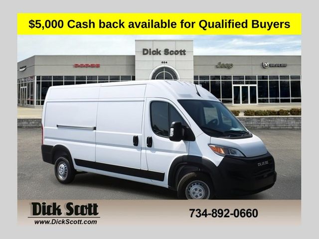 This ProMaster 3500 High Roof is nicely equipped with Power Group (100 Amp Battery, 115V Auxiliary Power Outlet, and 12V Rear Auxiliary Power Outlet), Quick Order Package 22B Tradesman w/Pass Seat (4-Way Manual Adjust Front Passenger Seat and Passenger Bucket Seat), Storage Group (Cargo Net, Shelf Above Roof Trim, and Underseat Storage Tray), 4 Speakers, 4-Wheel Disc Brakes, 4.08 Axle Ratio, 4G LTE Wi-Fi Hotspot, ABS brakes, Air Conditioning, AM/FM radio: SiriusXM, Apple CarPlay, Apple CarPlay/Android Auto, Black/Gray Seats, Bodyside moldings, Brake assist, Cloth Bucket Seats, Connectivity - US/Canada, Driver door bin, Driver Seat Armrest, Driver's Seat Mounted Armrest, Electronic Stability Control, Exterior Mirrors w/Supplemental Signals, For Details, Visit DriveUconnect.com, For More Info, Call 800-643-2112, Front anti-roll bar, Front Bucket Seats, Front reading lights, Front wheel independent suspension, Global Telematics Box Module (TBM), Google Android Auto, GPS Antenna Input, Heavy Duty Suspension, Illuminated entry, Low tire pressure warning, Manufacturer's Statement of Origin, Outside temperature display, Overhead airbag, Overhead console, ParkSense Rear Park Assist System, ParkView Rear Back-Up Camera, Passenger door bin, Power steering, Power windows, Premium Heavy Duty Suspension, Radio: Uconnect 5 w/7" Display, Rear anti-roll bar, Rear Heavy Duty Stabilizer Bar, Remote keyless entry, SiriusXM Radio Service, Steering wheel mounted audio controls, Tachometer, Telescoping steering wheel, Traction control, Trip computer, Turn signal indicator mirrors, Variably intermittent wipers, Wheel Center Cap, Wheels: 16" x 6.0" Steel, and Wood Floor... Customers must qualify for FCA employee pricing and qualify for the following rebates, Price includes: $5000 - 2025 National Bonus Cash . Exp. 02/02/2026