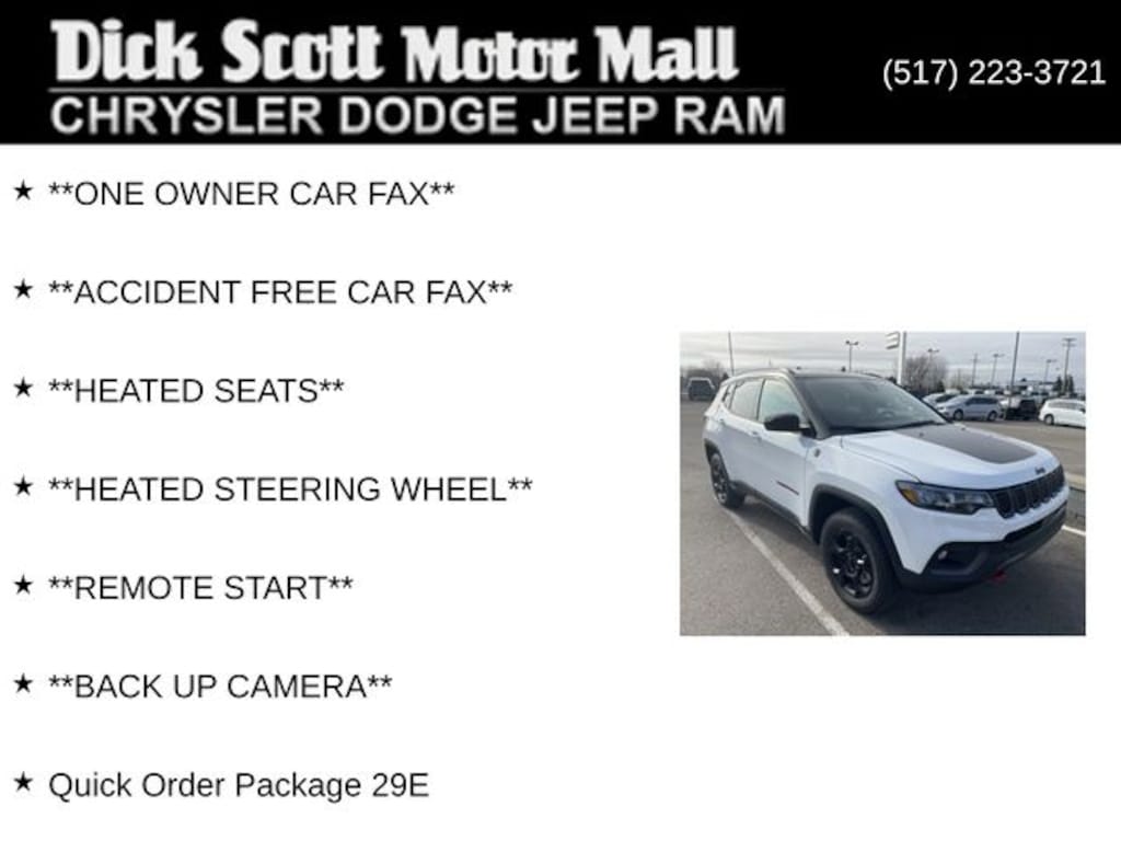 Recent Arrival! **ONE OWNER CAR FAX**, **ACCIDENT FREE CAR FAX**, **HEATED SEATS**, **HEATED STEERING WHEEL**, **REMOTE START**, **BACK UP CAMERA**, 4WD, 2nd Row USB Type A/C Charge Only, 4-Wheel Disc Brakes, ABS brakes, Heated Front Seats, Heated Steering Wheel, Power 2-Way Driver Lumbar Adjust, Power Adjust 8-Way Driver Seat, Quick Order Package 29E, Remote Start System, Reversible Carpet/Vinyl Cargo Mat, Trailhawk Convenience Group, Windshield Wiper De-Icer. Odometer is 17516 miles below market average! 24/32 City/Highway MPG